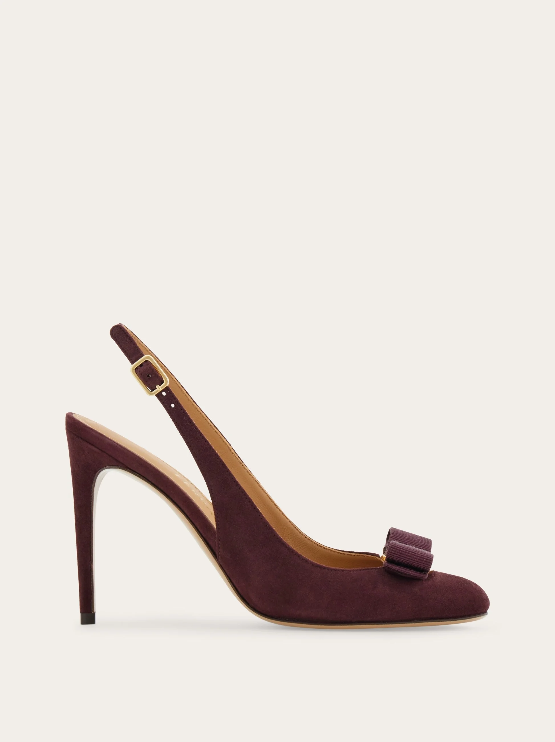 Simply stunning in the softest kid suede, Ferragamo defines contemporary femininity with this new slingback. The straight heel, almond toe and Vara grosgrain bow bring together iconic elements with modern geometries for a romantic shoe with a commanding presence. - Composition: kid suede - Made in ITALY - Product code: 01L430 791387