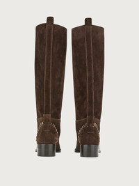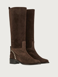 Easy pull on soft leather boot, with a subtle, timeless chic look. Essential and informal for refined daywear, its smooth, clean lines are punctuated by a decorative chain made up of mini Varini, for an elegant, feminine touch. The 4cm block heel is ideal for comfort with just the right lift for all day wear. The leather sole has rubber inserts on the heel and toe for impeccable grip. - Heel 4 cm - Composition: brushed calf leather - Made In ITALY