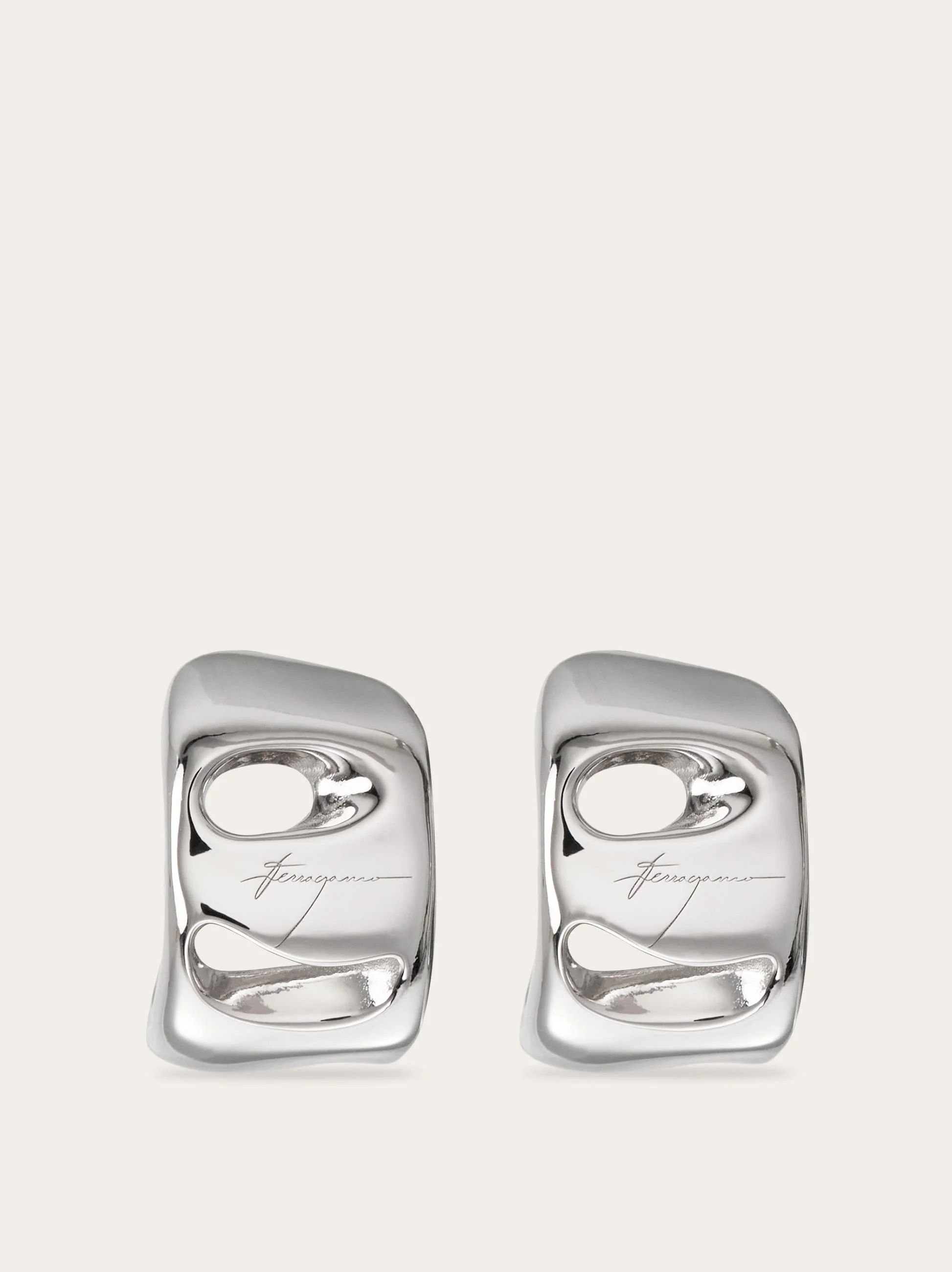An urban evolution of the hoop earrings, with an organic shape and lines inspired by the Vara buckle. The rhodium-plated finish ensures shine and durability, with an anti-oxidation effect. - Composition: 100% silver - Made in ITALY - Product code: 780035 780667