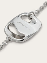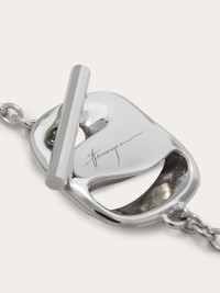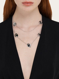 Long necklace made of pure silver, with a fine chain and small inserted detail with a shape inspired by the Vara buckle revisited with an organic twist. With an adjustable length, it can be worn as a double loop or bracelet. The rhodium-plated finish ensures shine and durability, with an anti-oxidation effect. - length 39.3 IN - Composition: 100% silver - Made in ITALY - Product code: 780026 780651
