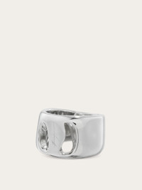 New band ring with organic lines and details inspired by the Vara buckle. Complemented by the engraved signature, it features a rhodium-plated finish that ensures radiance and durability with an anti-oxidation effect. - Composition: 100% silver - Size 56 - Made in ITALY - Product code: 780040 780762