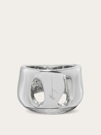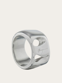 New band ring with organic lines and details inspired by the Vara buckle. Complemented by the engraved signature, it features a rhodium-plated finish that ensures radiance and durability with an anti-oxidation effect. - Composition: 100% silver - Size 52 - Made in ITALY - Product code: 780040 780760