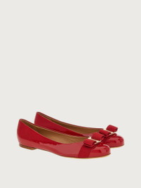 A glammed up version of the refined ballet flat in smooth patent leather. The bright red shade makes this the perfect shoe for elegant looks or to add a rock touch to daywear. The Vara grosgrain bow with golden metal plate and engraved logo decorates the rounded tip. - Composition: patent calfskin - Made in ITALY - Product code: 01A181 592125