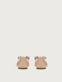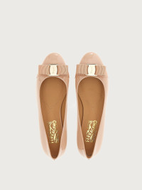 The quintessence of the Ferragamo spirit, the Varina ballet flat is a symbol of elegance with a timeless appeal. The minimal outline is cut from patent calf leather with a contemporary silhouette, complemented by a tonal grosgrain bow at the tip. Custom leather sole. - Composition: patent calfskin - Made in ITALY - Product code: 01A181 753657