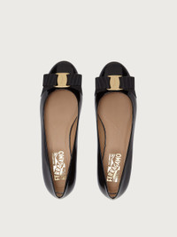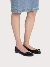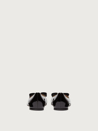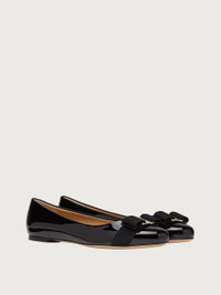 A glammed up version of the refined ballet flat in smooth patent leather. The sleek black makes this the perfect shoe for elegant looks or to add a rock touch to daywear. The Vara grosgrain bow with golden metal plate and engraved logo decorates the rounded tip. - Composition: patent calfskin - Made in ITALY - Product code: 01A181 574556