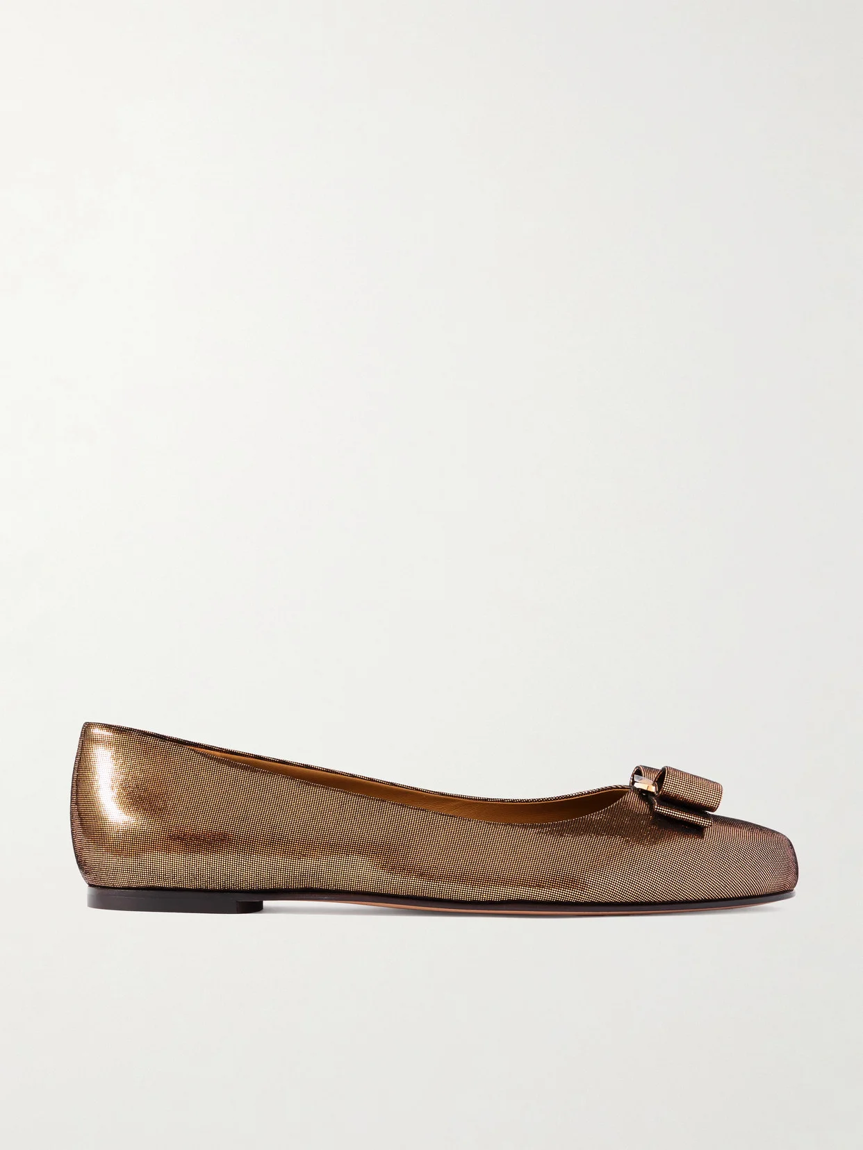 Ferragamo's 'Varina' ballet flats are both elegant and versatile, so it's little wonder they're one of the brand's best-selling styles. This pair is crafted from lustrous gold lame and embellished with the iconic grosgrain 'Vara' bow. Wear them to the office or at the weekend with a sweater and jeans.