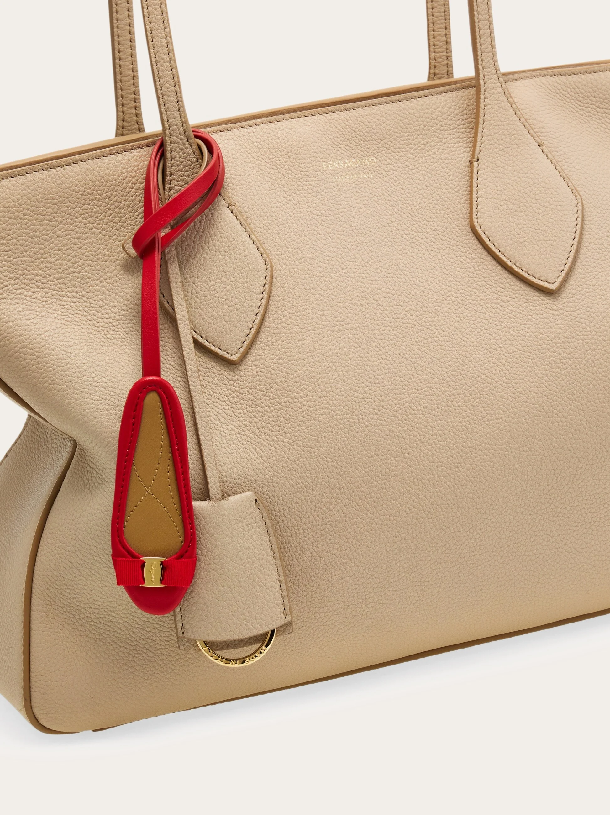Cute and playful, this tiny leather charm is the perfect piece to add a touch of whimsy to your handbag. A miniature recreation of the iconic Vara ballet flat, made by Ferragamo artisans in calfskin leather complete with the unmistakable gros grain bow and custom buckle. - height 3.7 IN length 1.3 IN width 0.1 IN - Composition: calfskin - Made in ITALY - Product code: 221051 790776