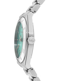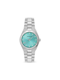 Vega 35mm Highlights - Silver-tone - Stainless steel case - Quartz movement - Aqua blue - Geometric dial - Arrow hands - Logo print embellishment - Round face - Roman numeral bezel - Screw-down crown - Stainless steel link bracelet - Folding clasp - Water resistance up to 50m/5 atm - This item comes with a standard two-year warranty from the brand. Imported SIZE & FIT Measurement CIRCUMFERENCE 1.37 in(3.5 cm)