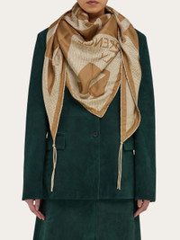 This maxi scarf can be worn in several different ways. It features the Venna logo, a graphic from a heritage pattern design by the artist Lucio Venna in the 1930’s. The motif first appeared inside the Vara pumps, and is revised here in current shades. - length 51.1 IN width 51.1 IN - Composition: 100% silk - Made in ITALY - Product code: 320998 783370