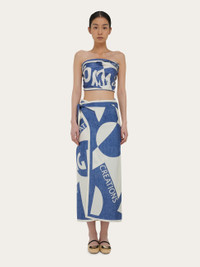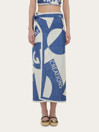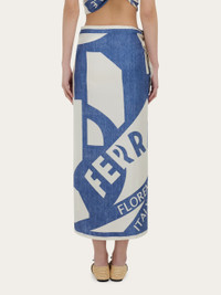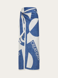 The woven raffia texture of this silk sarong echoes a luxurious look with a laid back appeal. The wrap construction features waist ties, and the print was created by artist Lucio Venna for Ferragamo in the 1930’s. The chic, futuristic motif made its first appearance inside the Vara pumps. - length 62.9 IN width 35.4 IN - Composition: 100% silk - Made in ITALY - Product code: 321030 784124