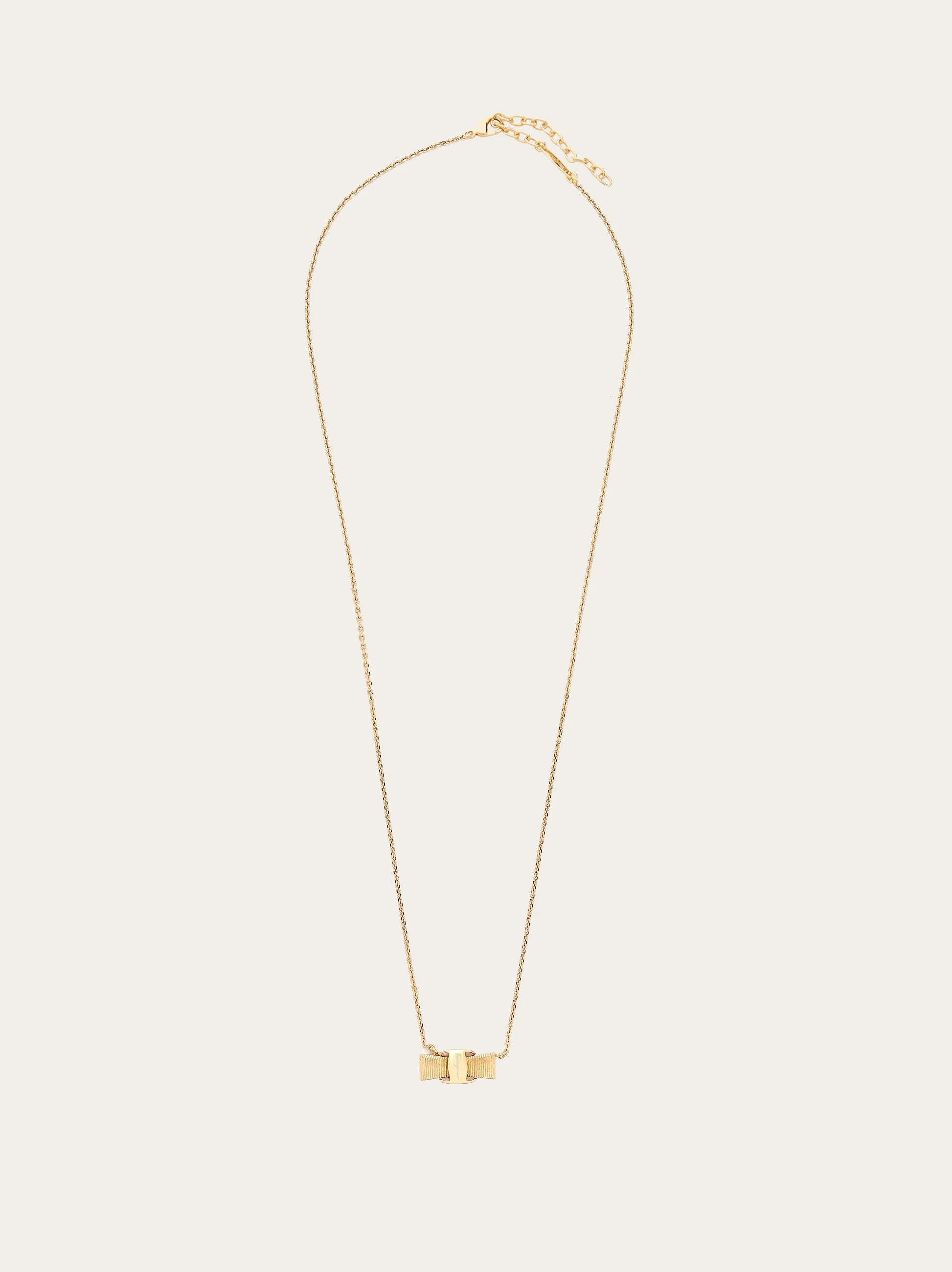 Featuring the iconic Vara bow, this golden pendant necklace is subtle and super chic. The metal is engraved with a ribbed effect to recreate the famous grosgrain look. Cool and romantic. - Composition: brass - Made in ITALY - Product code: 760547 998985