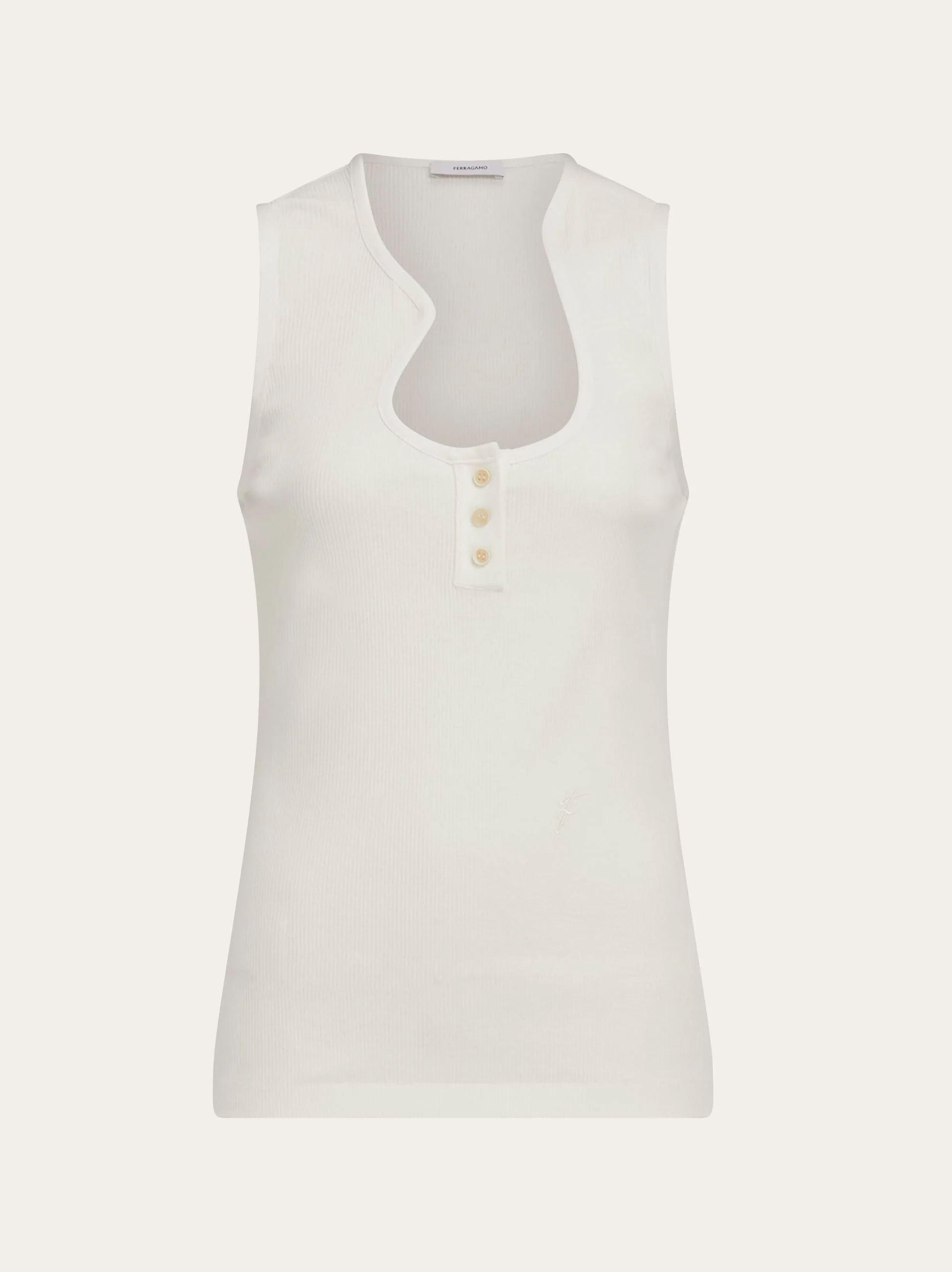 A sculptural neckline and luxurious fabric give this button up vest a high fashion feel. Cut from Japanese crepe cotton rib with a three dimensional effect, the soft, figure hugging silhouette features a tonal F embroidered at the side waist. - Composition: 100% cotton - Model measurements: Height 5' 10½ "/179 cm ; Bust 31½ "/80 cm; Waist 23½ "/60 cm; Hips 34½ "/88 cm - Model wearing: XS - Made in ITALY - Product code: 113453 782727