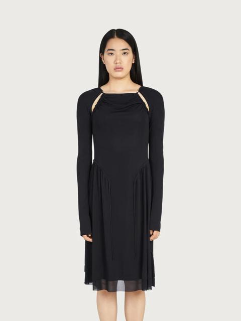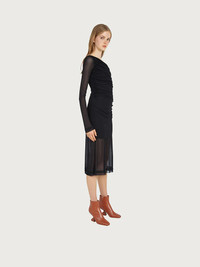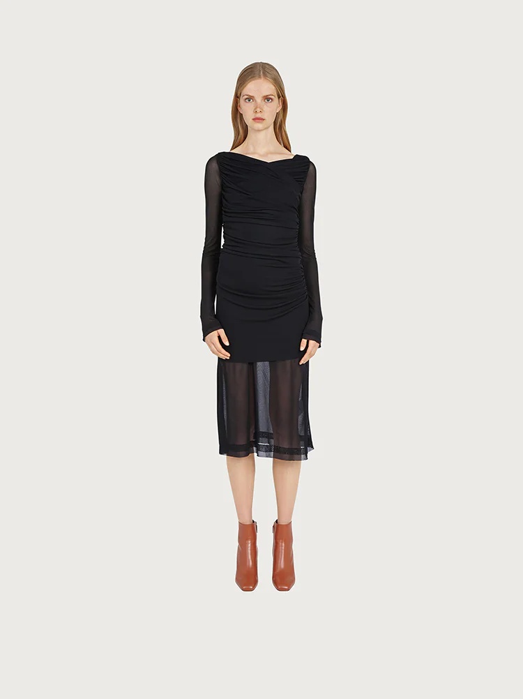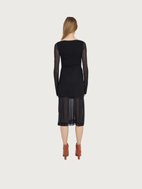 Beautiful textures, flattering drapes and sensual transparency. This dress is made of viscose fluid jersey, the perfect combination of relaxed sophistication, that will make it a faithful fave for when you want to look your best. The wrapped and draped front, with a toga like sensuality, is complemented by sheer viscose sleeves and a lower skirt. A sublime look with a responsible soul, the viscose is sourced from certified responsible forestry. Model measurements: Height 5'11"/180 cm, Bust 32"/81.5 cm, Waist 25½"/64.5 cm, Hips 34½"/87 cm - Composition: 100% viscose derived from certified responsible forestry - Made In ITALY