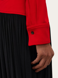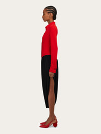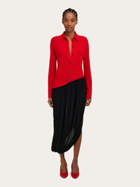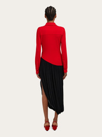 An urban aesthetic with a strong personality cut from smooth stretch viscose. The shirt-style bodice is fitted with a diagonal cut hem, while the gathered skirt recalls the Tulip dress, with high slit sides and a soft drape. - Composition: 92% viscose, 8% elastane - Model measurements: Height 5' 9"/175 cm; Bust 30"/76 cm; Waist 24"/61 cm; Hips 34½"/87 cm - Model wearing: 38/XS - Made in ITALY - Product code: 13H211 785375