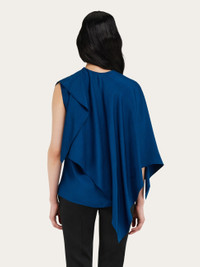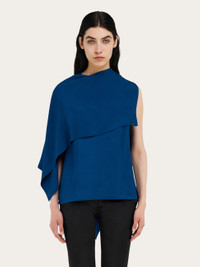 The embodiment of contemporary Ferragamo elegance, the cape detail of this pure viscose top has a fluid silhouette, the drape of which can be modified to your own personal style. Its avant garde asymmetry infuses a poetic allure to the soft, minimal design. - Composition: 100% viscose - Model measurements: Height 5' 10"/178 cm; Bust 31½ "/80 cm; Waist 23½"/60 cm; Hips 34 "/88 cm - Model wearing: 38 - Made in ITALY - Product code: 13G521 780682