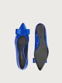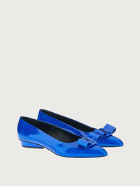 Fresh and powerful, impactful with a feminine flair: this new take on the ballerina flat is sure to turn heads with its bold hue and high shine. The Viva ballet flat combines sophisticated design with iconic brand elements and modern shapes. The slightly closed neckline couples with the oversized bow for a modern chic touch, while the color of the luminous nappa leather is echoed in the metallic plate with 3D signature. The intriguing shape of the heel is inspired by the sculptures of Richard Serra, confirming a truly contemporary allure. - Heel 2 cm - Composition: patent leather - Made In ITALY