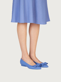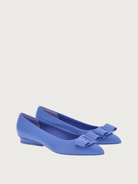 An exciting new icon with an innovative shape. Viva is the new Ferragamo ballet flat with a sophisticated and feminine design; a culmination of iconic elements of the brand with updated shapes. The slightly tapered neckline couples with the oversized bow for a trendy-chic look. Made of very soft lamb nappa leather, it has a tonal painted metal plate and a relief signature with a three-dimensional effect. The teardrop-shaped heel is inspired by the sinuous sculptures of Richard Serra, infusing a contemporary allure. - Heel 2 cm - Composition: nappa - Made In ITALY