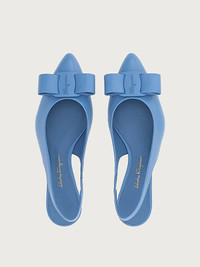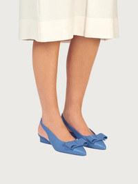 Viva is a new exciting Ferragamo icon. This slingback is the ideal blend of practicality and feminine style, resulting in a glam shoe with avant garde lines. Made of very soft nappa leather, it has a tapered tip, a slightly closed neckline and an oversize tassel bow. The tonal painted metal plate and the signature in relief add a metropolitan twist. Elastic side insert and heel with teardrop silhouette, inspired by the sculptures of Richard Serra. - Heel 2 cm - Composition: Nappa leather - Made In ITALY