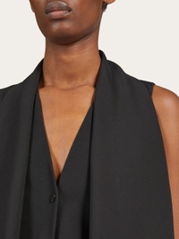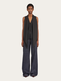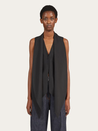 A modern twist on a classic. Made of pure virgin wool, this waistcoat fastens with a single button to create a discreet central vent. A large sash attached at the neck imparts a fluidity that contrasts the pointed hem and straight cut back. - Composition: 100% pure virgin wool - Product code: 13C975 770078 - Made in ITALY