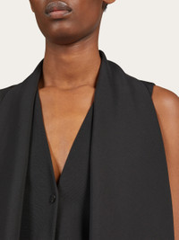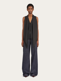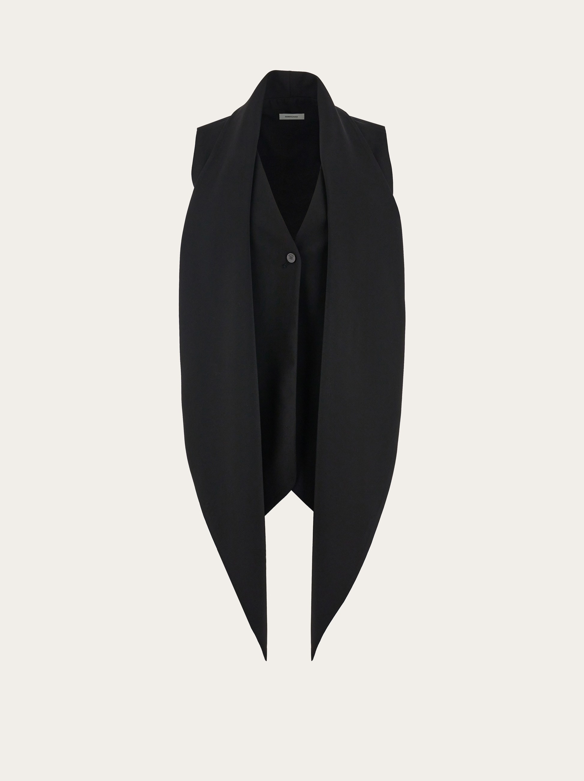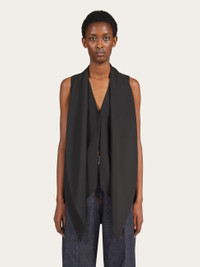 A modern twist on a classic. Made of pure virgin wool, this waistcoat fastens with a single button to create a discreet central vent. A large sash attached at the neck imparts a fluidity that contrasts the pointed hem and straight cut back. - Composition: 100% pure virgin wool - Model measurements: Height 5' 10"/178 cm; Bust 31½ "/80 cm; Waist 23½"/60 cm; Hips 34 "/88 cm - Model wearing: 38 - Made in ITALY - Product code: 13C975 770078