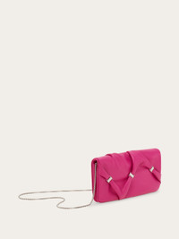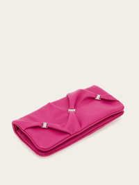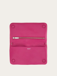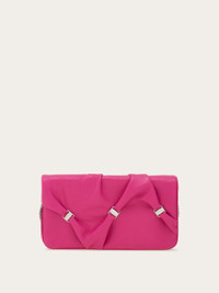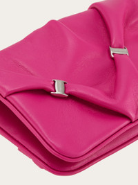 An expression of Ferragamo's craftsmanship, the tassel of this wallet is softly draped like a fabric, held in place by palladium-finishing mini Varini. The interior offers a functional solution with a button closure, flat pocket, slots, compartments and a zippered coin pocket. The removable metal shoulder strap also allows it to be worn as a mini bag. - height 4.1 IN length 8.2 IN width 0.9 IN - Composition: nappa - 1 zip pocket, 1 compartment - Made in ITALY - Product code: 220864 780063
