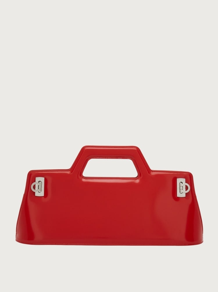 The construction of this avant-garde, geometric handbag has been inspired by our iconic Wanda style. Crafted from brushed calfskin, it features a lined interior with two flat pockets to hold your essentials. Carry it as a handbag or shoulder bag with the detachable strap. Side fastening with satin-finish steel Gancini accent. - Composition: brushed calfskin - Made In ITALY