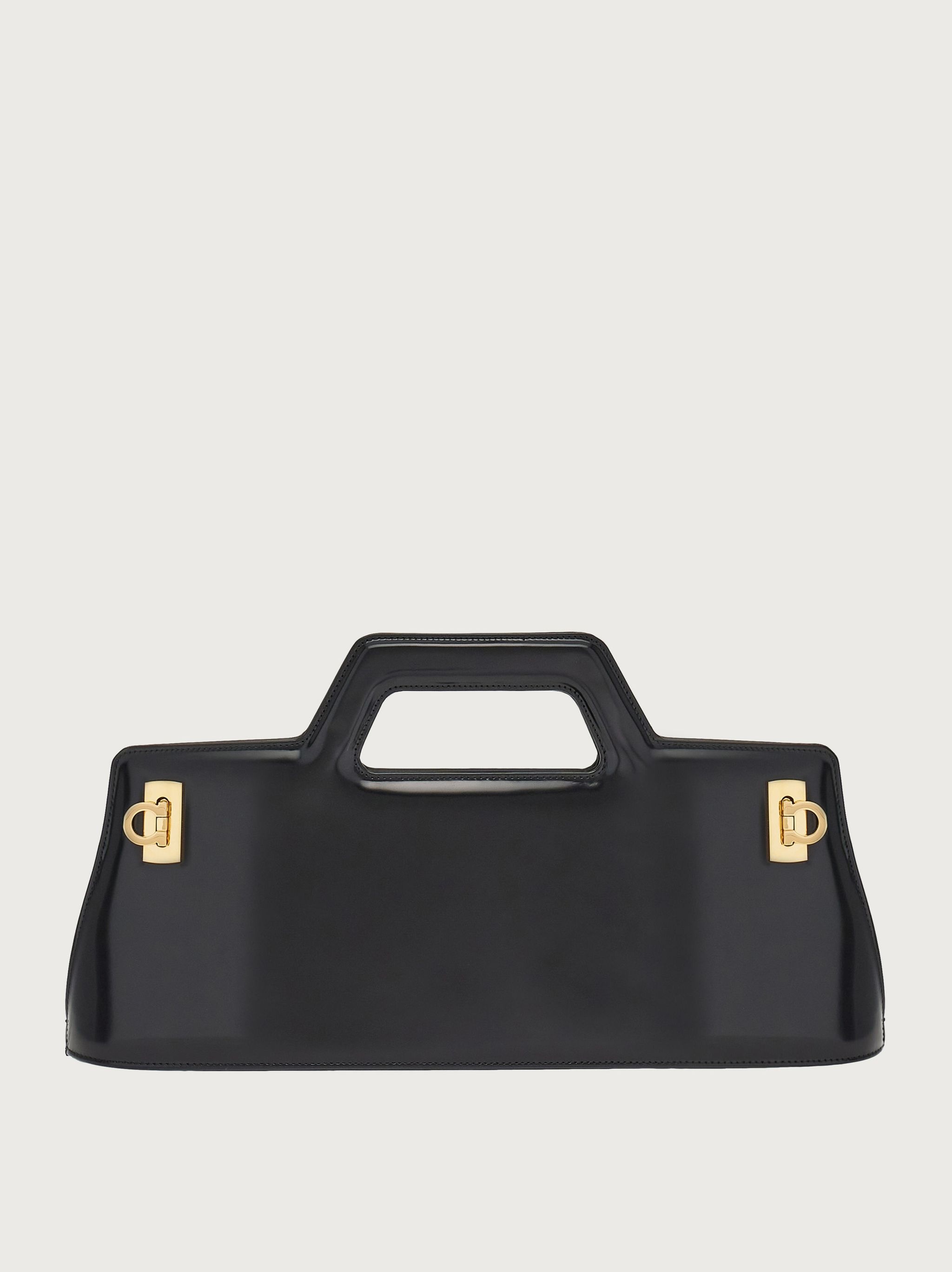 The new contemporary take on our Wanda bag featuring geometric lines and smooth calfskin panels. An understated construction with integrated handle and satin-finish Gancini buckles on the sides. Carry it as a handbag or shoulder bag with the detachable strap. - height 20.0 CM / 7.8 IN length 37.0 CM / 14.5 IN width 9.0 CM / 3.5 IN - Composition: calfskin - Product code: 213484 760351 - Made in ITALY