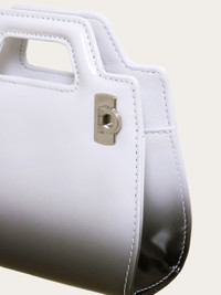 Like a prêt-à-porter piece of jewelry, the Wanda micro bag plays around with geometric shapes and volume to create a new version of our iconic model. The geometric forms feature rigid panels and a double Gancini buckle on the side. Carry it as a crossbody bag with the detachable strap. - height 13.0 CM / 5.1 IN length 4.0 CM / 1.5 IN width 13.0 CM / 5.1 IN - Composition: calfskin - Product code: 213984 762617 - Made in ITALY