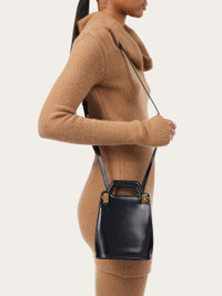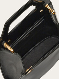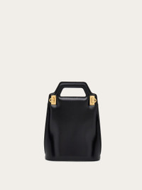 The mini version of our Wanda handbag represents the new take on the iconic style designed by Salvatore Ferragamo. The geometric forms feature rigid panels that incorporate the space for the handle and a double Gancini buckle on the side. The interior is complemented by a tonal lining and a double flat pocket. Carry it as a handbag or shoulder bag with the detachable strap. - height 9.2 IN length 7.0 IN width 2.7 IN - Composition: calfskin - Made in ITALY - Product code: 213494 762502