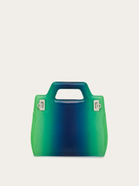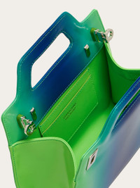 The new contemporary take on our Wanda bag featuring geometric lines and panels adorned with hand-crafted two-tone nuances. Compact like a little gem, it is complemented by the satin-finish Gancini buckle on the sides. Carry it as a handbag or shoulder bag with the detachable strap. - height 18.0 CM / 7 IN length 18.0 CM / 7 IN width 6.0 CM / 2.3 IN - Composition: calfskin - Product code: 213485 762579 - Made in ITALY