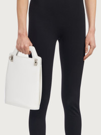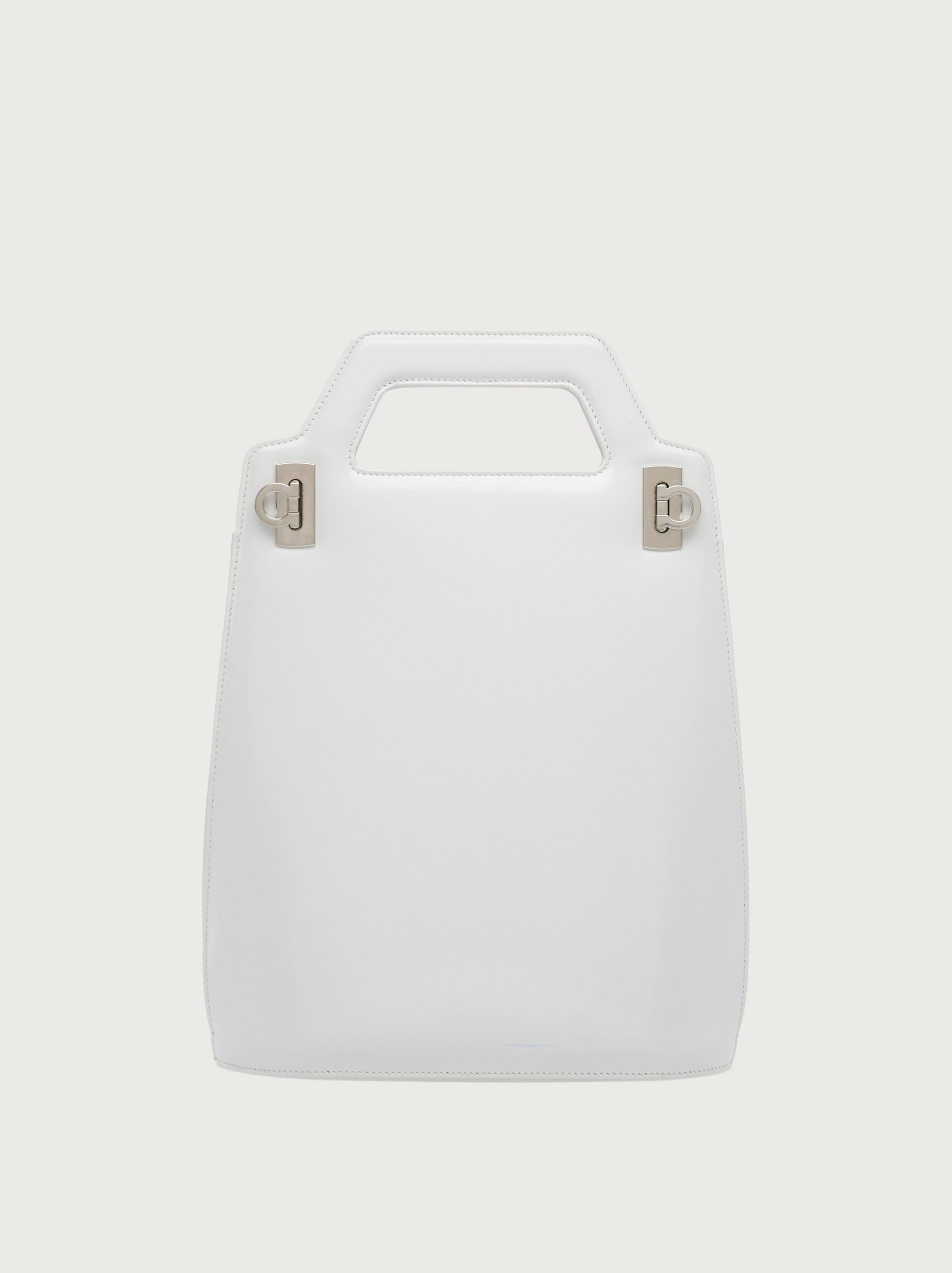 Sharply geometric top-handle bag featuring a vertical shape and a construction inspired by our iconic Wanda style. The avant-garde lines encompass an integrated handle, accordion-style sides and a rigid structure. The lined interior is complemented by a double flat pocket to hold your essentials. Side fastening with satin-finish steel Gancini accent. Carry it as a handbag or shoulder bag with the detachable strap. - height 34.0 CM / 13.3 IN length 22.0 CM / 8.6 IN width 9.0 CM / 3.5 IN - Composition: brushed calfskin - Product code: 213483 760549 - Made in ITALY