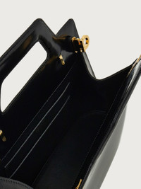 A new top-handle bag featuring an avant-garde construction with lines inspired by our iconic Wanda style. The lines are geometric with rigid panels decorated by handcrafted airbrush detailing that creates an ombre effect. The interior is complemented by a tonal lining and a double flat pocket. Carry it as a handbag or shoulder bag with the detachable strap. - height 11.4 IN length 13.7 IN width 3.9 IN - Composition: brushed calfskin - Made in ITALY - Product code: 213961 761287