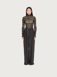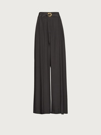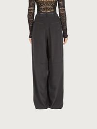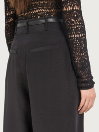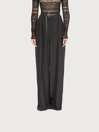 A cool twist on a tailoring classic, these pure silk trousers will add a swish to your step. The high waist features a leather belt with Gancio buckle, while the volume of the leg is emphasized by a deep central crease. The slanted pockets are functional and confirm and effortless chic appeal. Model measurements: Height 5' 9½"/176 cm; Bust 30½"/78 cm; Waist 23"/58 cm; Hips 34 "/88 cm Worn size: 38 - Composition: 100% silk - Made In ITALY