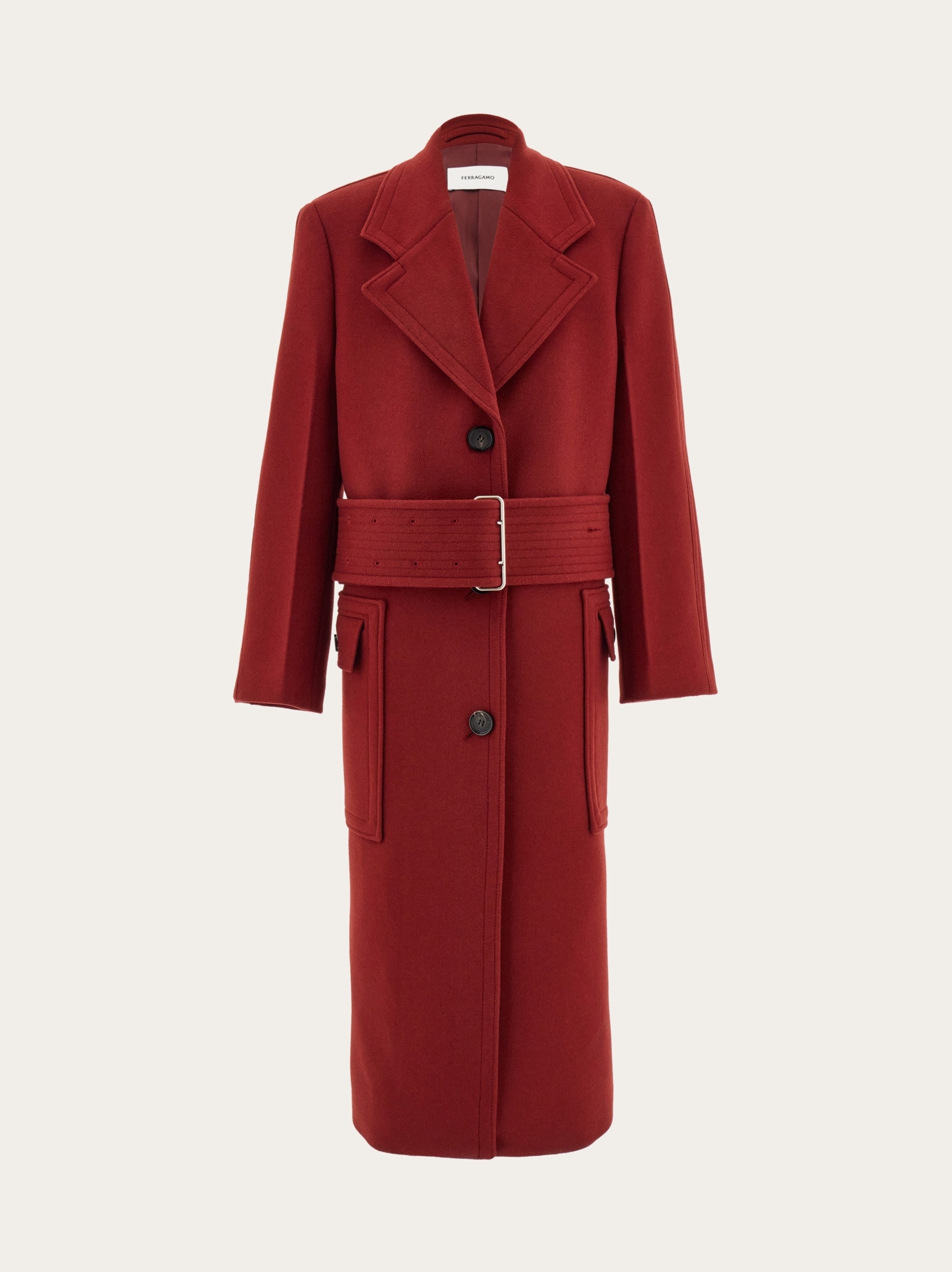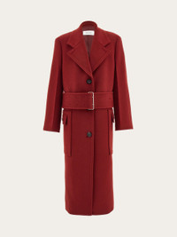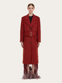 Long cashmere and wool coat with wide belt