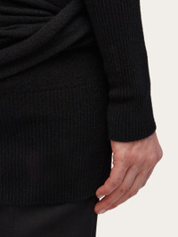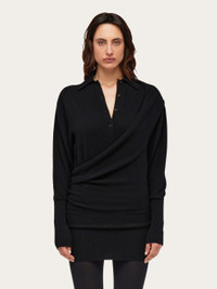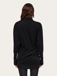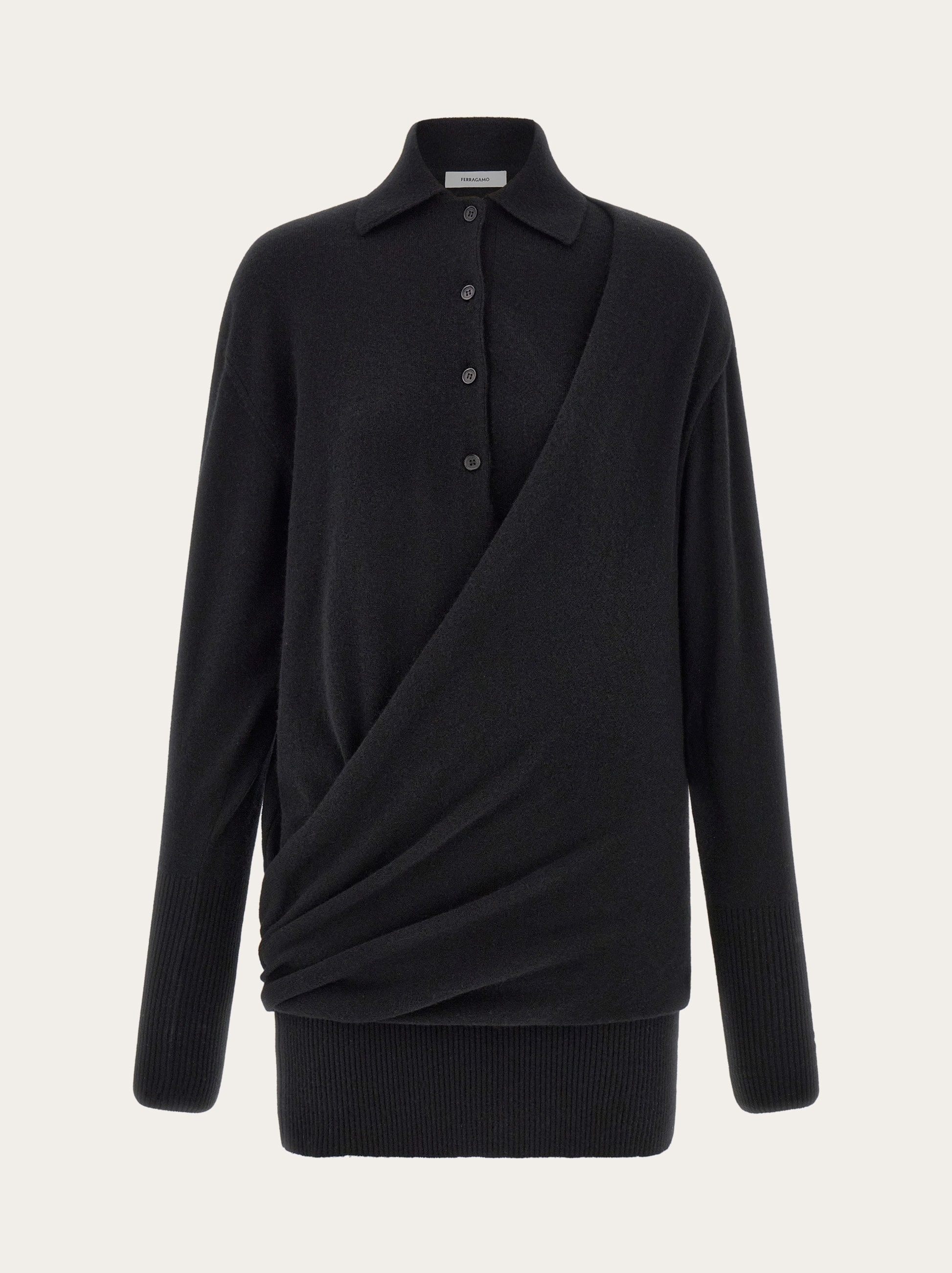 Relaxed polo dress made of the softest wool and cashmere. The clean line is given volume from the left shoulder with a drape that runs diagonally across the front and is twisted just above the right bottom hem. High cut rib knit trims confirm a current appeal. - Composition: 70% pure virgin wool, 30% cashmere - Made in ITALY - Product code: 112910 778058