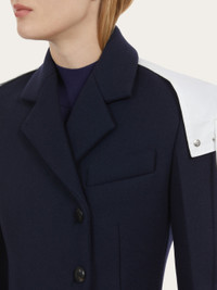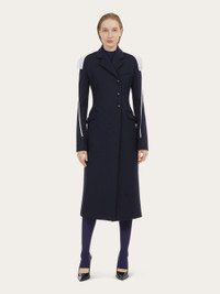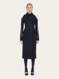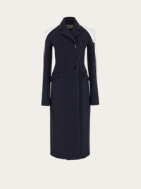 Classic tailoring meets contemporary design in this new double breasted wool coat. The slim fit features asymmetric fastening on the left side, with a single chest pocket and two flap pockets at the hips. The tapered cuffs have high slits and a single button. - Composition: 100% wool - Product code: 13C624 766741 - Made in ITALY