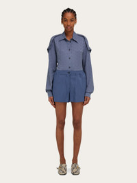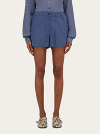 Made of wool faille with a fine vertical fleck, the delicate yet stiff fabric of these city shorts has an impeccable drape. The business-like feel of the silhouette is softened by an elasticated drawstring waist. Slit pockets at the hips and a flap pocket at the back complete the design. Pair with the matching blazer for a current uptown look. - Composition: 73% viscose, 27% pure virgin wool - Model measurements: Height 5' 9"/175 cm; Bust 30"/76 cm; Waist 24"/61 cm; Hips 34½"/87 cm - Model wearing: 38/XS - Made in ITALY - Product code: 13H324 784749