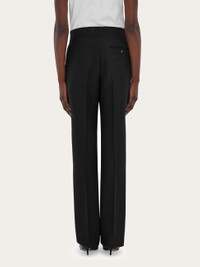 Cut from a sophisticated blend of viscose and pure virgin wool, these tailored trousers are a mix of high-end tailoring and high fashion details. The applied waist band features a hook and eye clasp with internal button, with welt pockets at the back and slit pockets at the sides. Ironed creases emphasize the slight flare along the leg. - Composition: 73% viscose, 27% pure virgin wool - Model measurements: Height 5' 11½"/181 cm; Bust 32½ / 82cm; Waist 23"/59 cm; Hips 35½"/90 cm - Model wearing: 38/XS - Made in ITALY - Product code: 13H215 786955