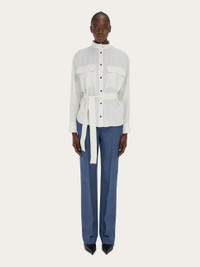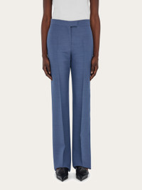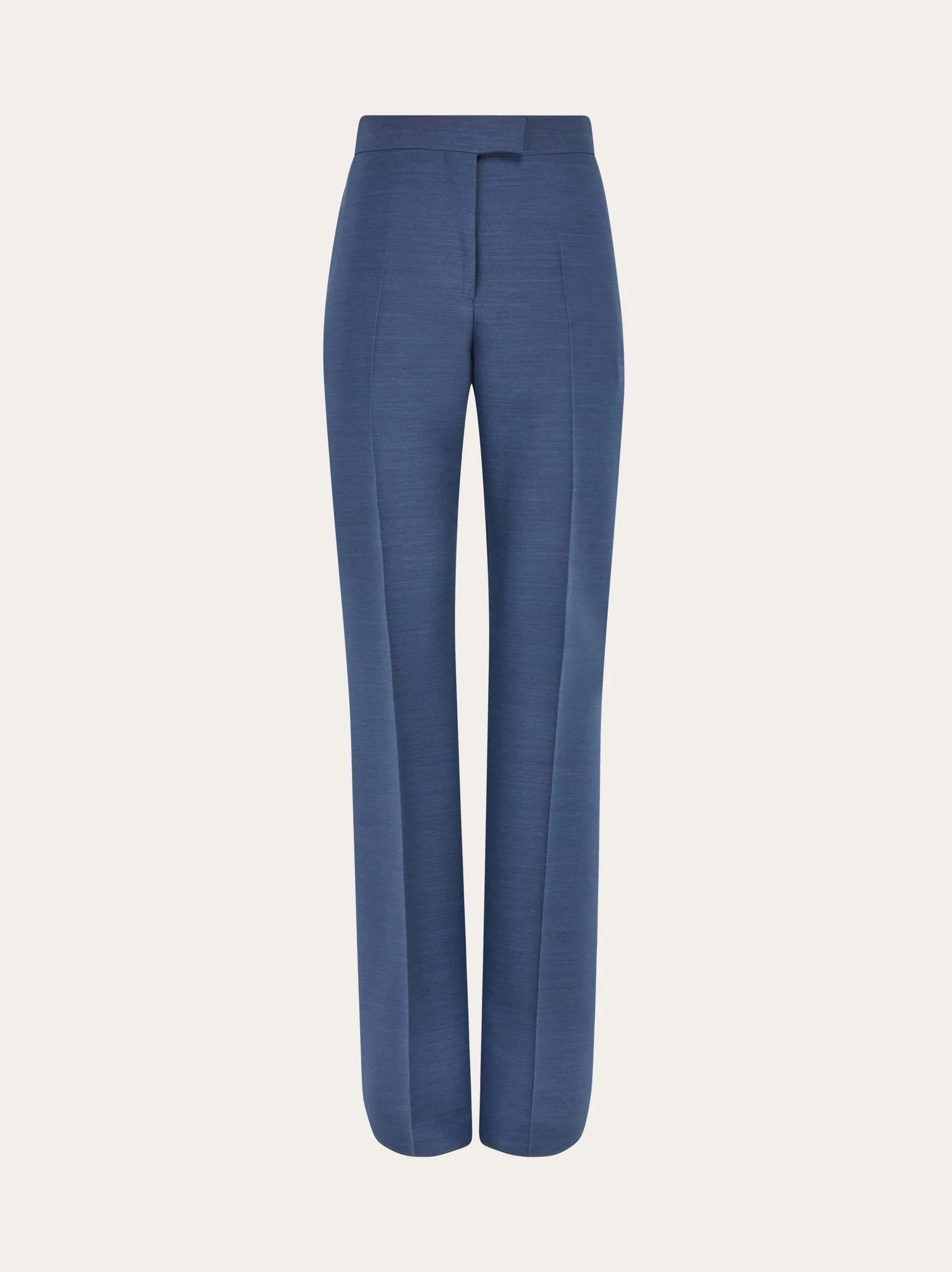 Cut from a sophisticated blend of viscose and pure virgin wool, these tailored trousers are a mix of high-end tailoring and high fashion details. The applied waist band features a hook and eye clasp with internal button, with welt pockets at the back and slit pockets at the sides. Ironed creases emphasize the slight flare along the leg. - Composition: 73% viscose, 27% pure virgin wool - Model measurements: Height 5' 11½"/181 cm; Bust 32½ / 82cm; Waist 23"/59 cm; Hips 35½"/90 cm - Model wearing: 38/XS - Made in ITALY - Product code: 13H215 786956