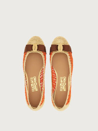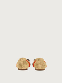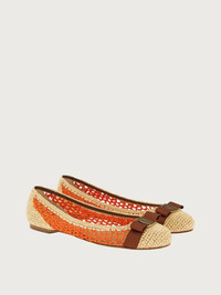Summer is here! Raffia is much loved at the House of Ferragamo, and has featured in their creations since the 1930s. This sophisticated version of the Varina ballet flat features a woven raffia upper with crochet stitching on the sides and a crochet cotton toe and heel. The gros grain bow, with its golden metal plate, completes a mélange of textures that is truly eye catching. An inner transparent mesh lining ensures comfort and durability. - Heel 1 cm - Composition: raffia - Made In ITALY