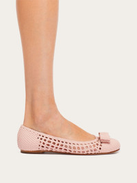 A beautiful expression of the artisan skill for which the Brand is admired, this ballet flat is made of woven leather with a tighter weave at the heel and toe to hold its shape. The sophisticated silhouette is unmistakably Ferragamo, confirmed by the tonal bow and signed buckle at the tip. Suede inserts feature at the heel, and the insole is padded for extra comfort. - Composition: calfskin - Made in ITALY - Product code: 01H631 768893