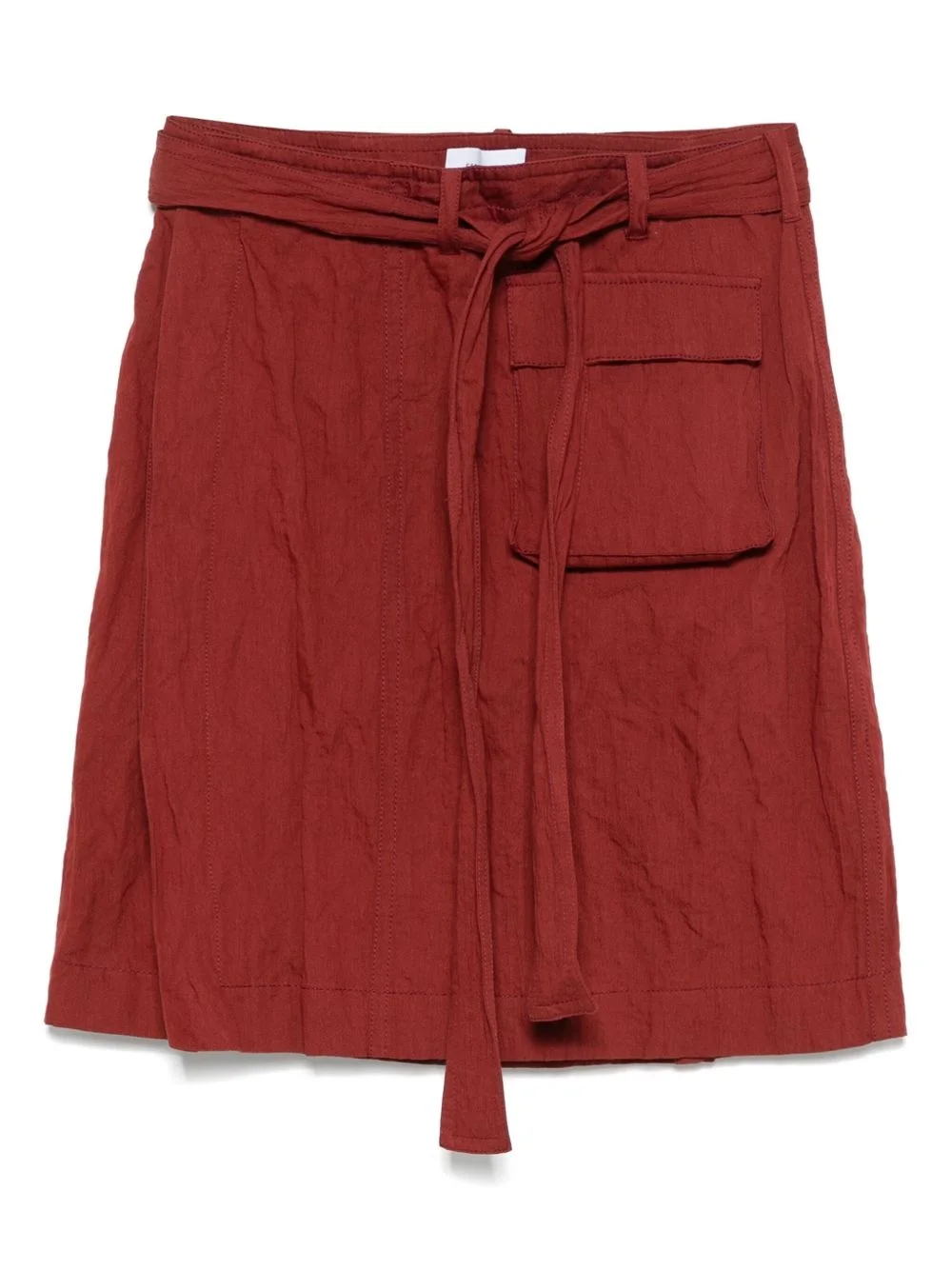 wrap mini skirt Highlights - Rust red - Concealed front fastening - Belt loops - Detachable waist belt - Front flap pocket Made in Italy Composition Cotton 84%, Metallised Fibres 16%