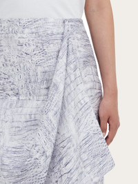 Effortless wrap skirt with an alligator print in neutral hues. The smooth texture of pure silk is enhanced by the voluptuous fold that gracefully drapes the front, while belt loops add an urban edge. - Composition: 100% silk - Made in ITALY - Product code: 13I043 791405