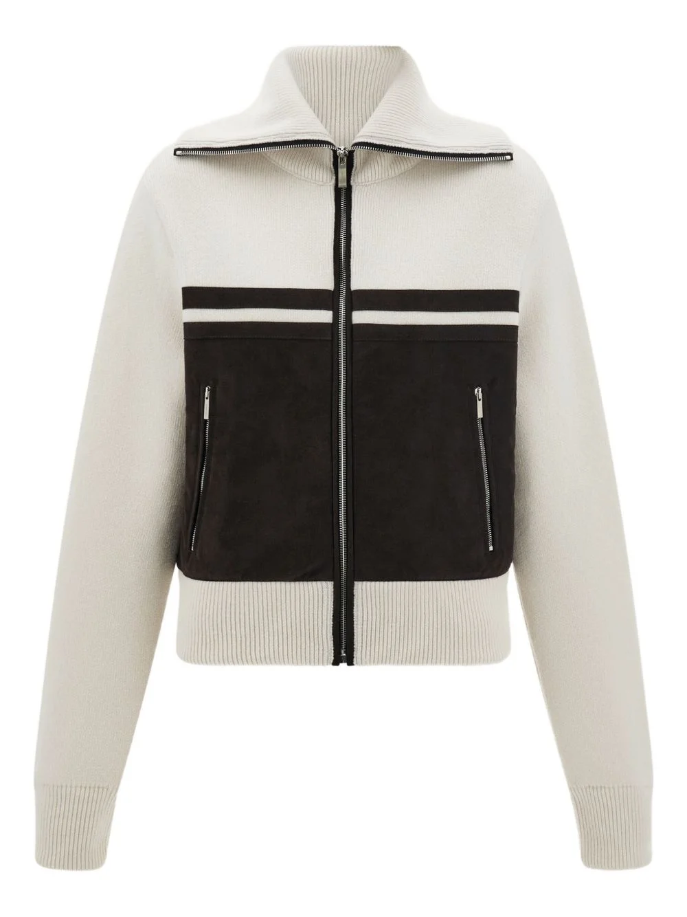 zip-fastening high-collar jacket Highlights - White - Ribbed trims - Two-way zip fastening - High collar - Long sleeves - Zip pockets Made in Italy Composition Outer: Virgin Wool 100% Lining: Wool 85%, Artificial Suede 15% Washing instructions Read Manufacturer Guidelines