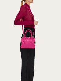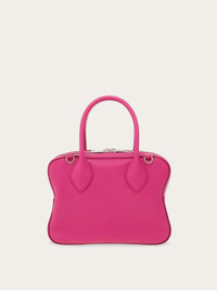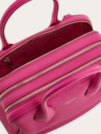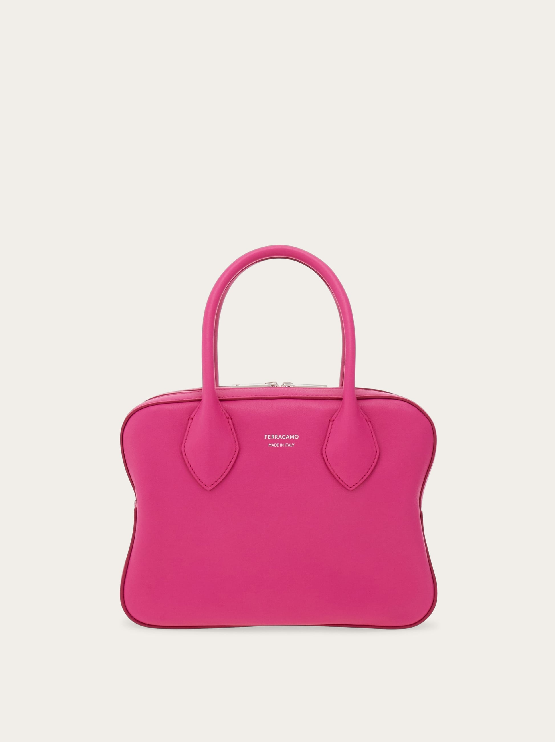 With its eye catching silhouette and refined texture, this new Ferragamo handbag is both practical and luxurious. The shape of this compact iteration is softened and almost star-like, and the vegetable dyed calfskin is punctuated by three wrap-around zips for perfect organization of your personal effects. Inside, the custom lining features a zip pocket in the last compartment which sits just below the double top handle. - A) Height 10.6 IN B) Length 9.0 IN C) Width 5.9 IN - Composition: calfskin - Handle drop: 4.7 IN - Made in ITALY - Product code: 218958 779091