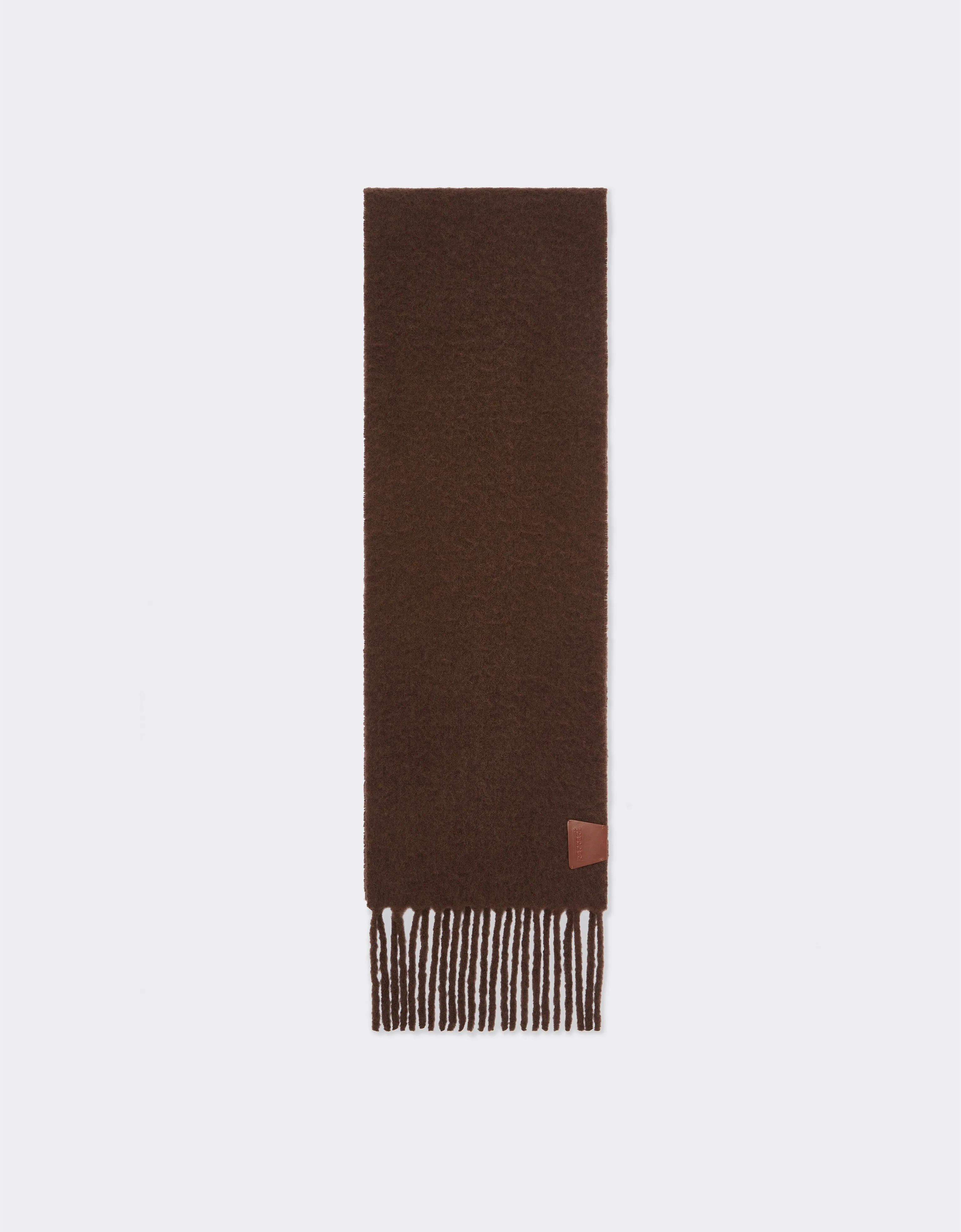 Warm and soft scarf made of a fine alpaca blend yarn. The accessory expresses the synthesis of high Made in Italy craftsmanship and design refinement that characterizes the Ferrari collection, here expressed in the color choice and fraying detail. The leather label with embossed Ferrari logo adds an unmistakable iconic touch. DETAILS - Made in Italy - Dimensions: 28 cm x 180 cm - Fringe on the short sides - Leather label with embossed Ferrari logo . MATERIALS PR: WP-VA:80.0 Product Code: 22714f38
