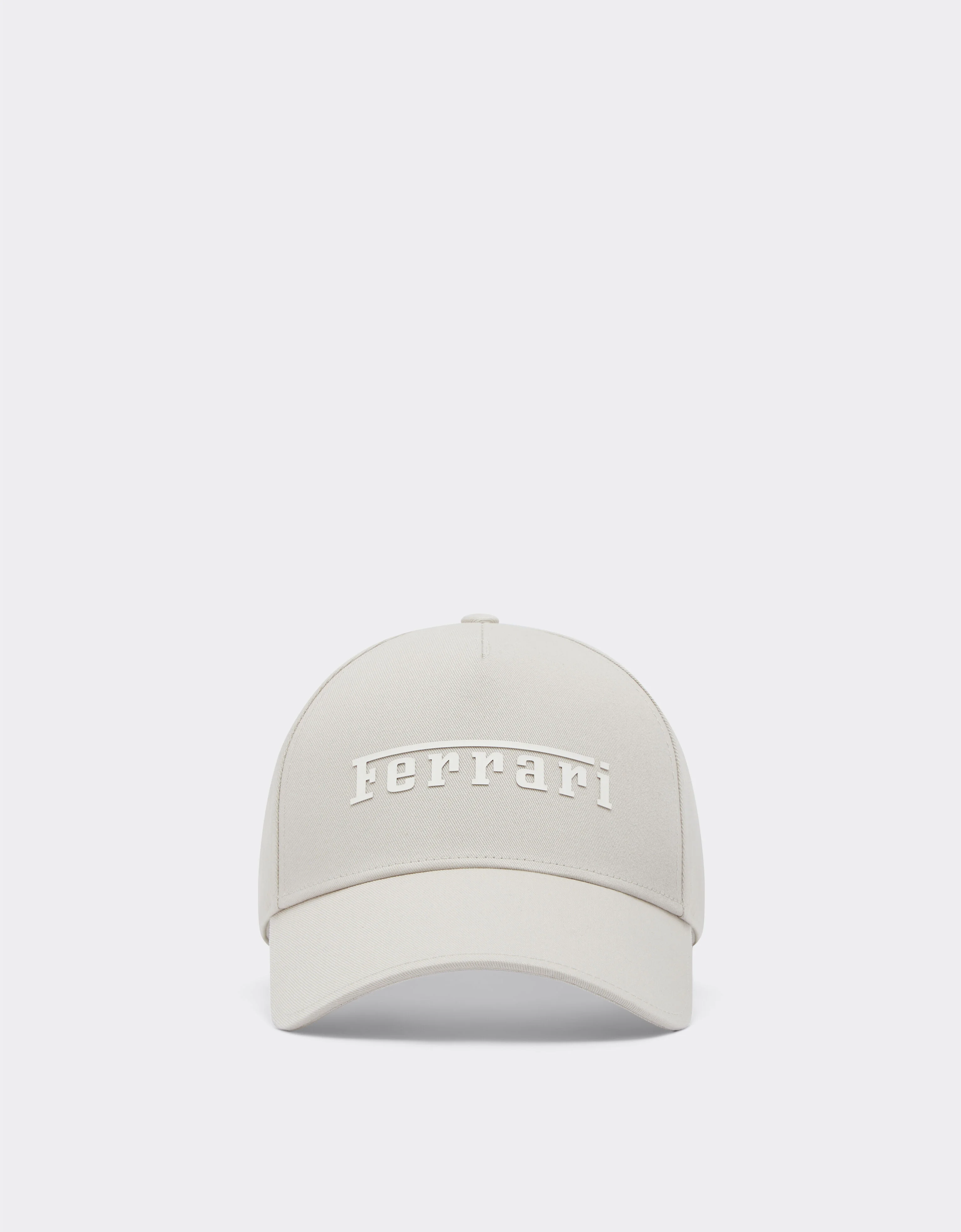 contemporary design defines this baseball cap, defined by a contrasting rubberized Ferrari logo print on the front. Crafted from cotton twill, it features a silver-finish hook-and-loop closure and a Prancing Horse embellishment. DETAILS - Rubberized print with Ferrari logo on the front - Hook and loop closure with Prancing Horse on the back MATERIALS PR: 100%CO Product Code: 20403f138