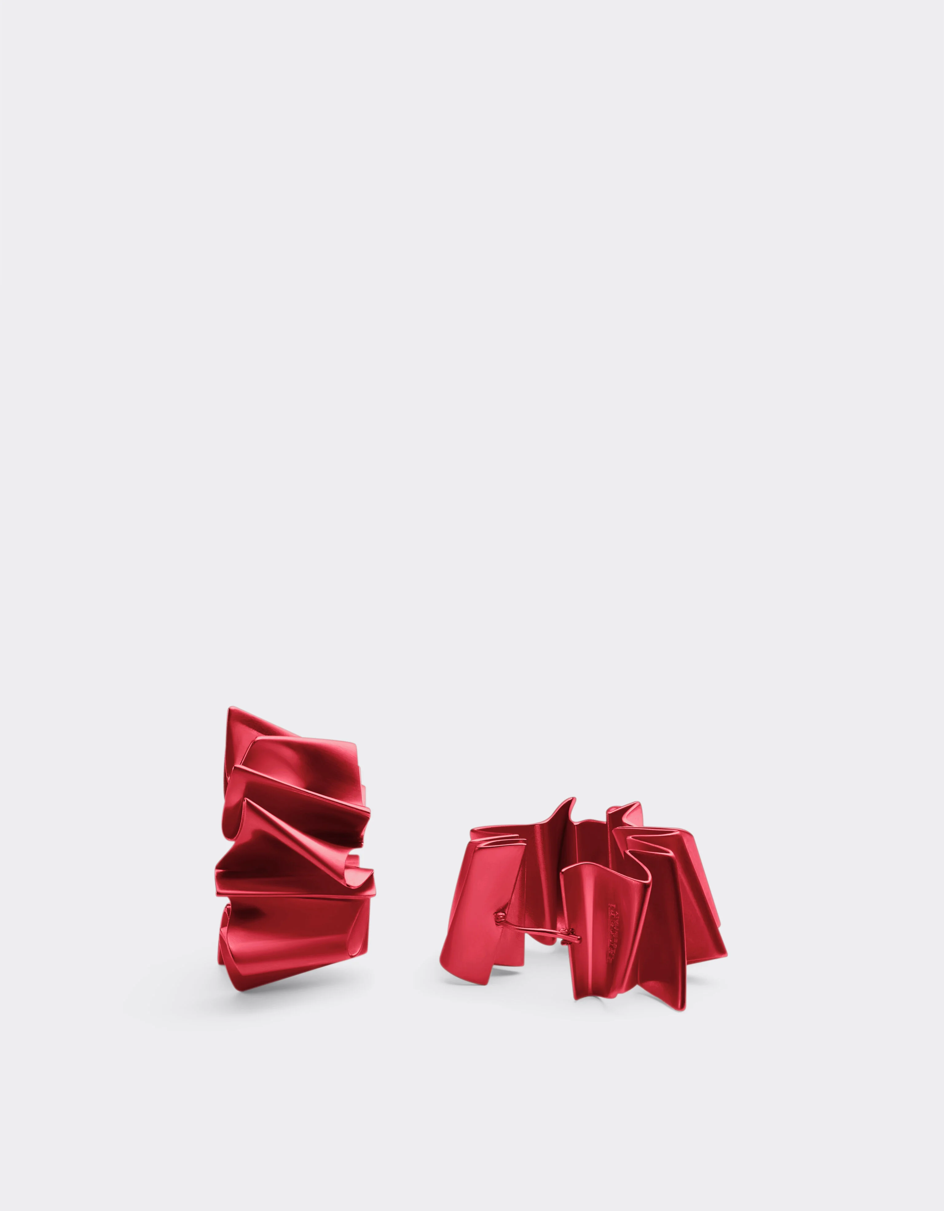 Brushed brass earrings finished in matt metallic red and then enamelled for a glossy effect. The sophisticated workmanship recalls the processes used on Ferrari cars in the legendary Officina, the inspiration behind the collection. The design recreates a pleated effect and exudes sculptural elegance. DETAILS - Made in Italy - 3D print - Matt metallic finish - Butterfly clasp MATERIALS PR: BRASS-VA:100.0 Product Code: 49114f112