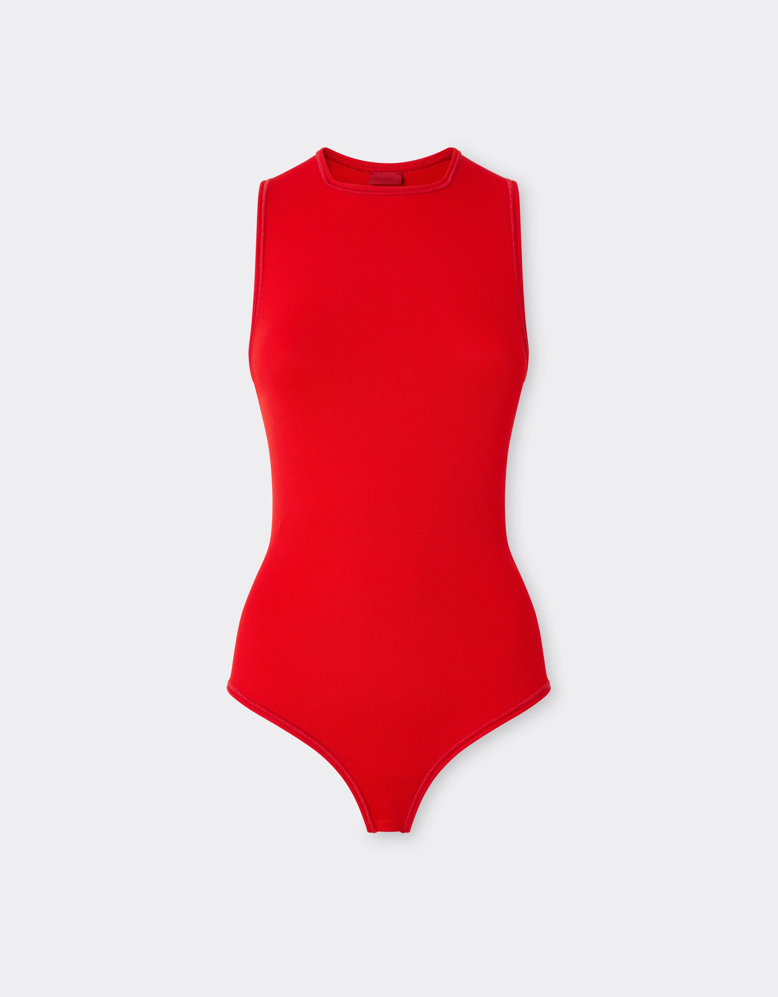 Clean lines define this sleeveless bodysuit, featuring a square neckline that precisely enhances the silhouette. The Milano knit jersey, made from FSC-certified viscose with a stretch component, offers a compact structure and a slight sheen with a technical feel. DETAILS - Slim fit - Square neckline - Sleeveless MATERIALS PR: VI:86.0 Product Code: 51196f185