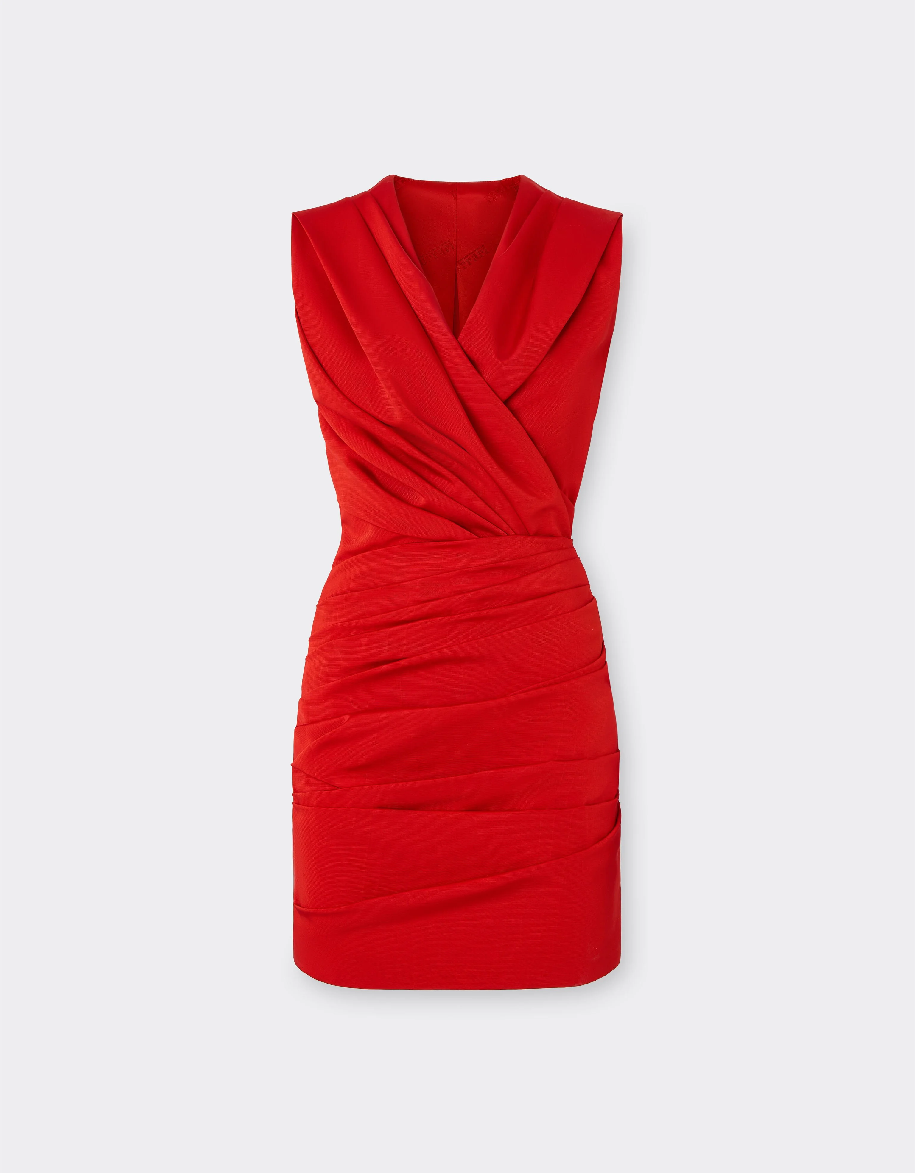 A sinuous silhouette takes shape through the draped construction at the front of this short, sleeveless V-neck dress. A garment that transforms the vibrant, iridescent cotton moire surface in motion. DETAILS - Regular fit - Short silhouette - V-neck - Sleeveless - Drape construction at the front - Concealed side zip closure MATERIALS PR: VI:65.0 Product Code: 51033f185